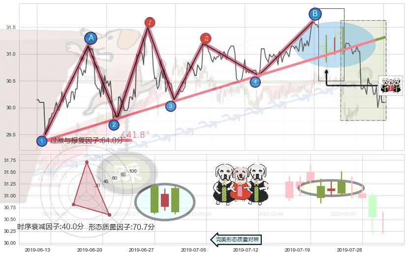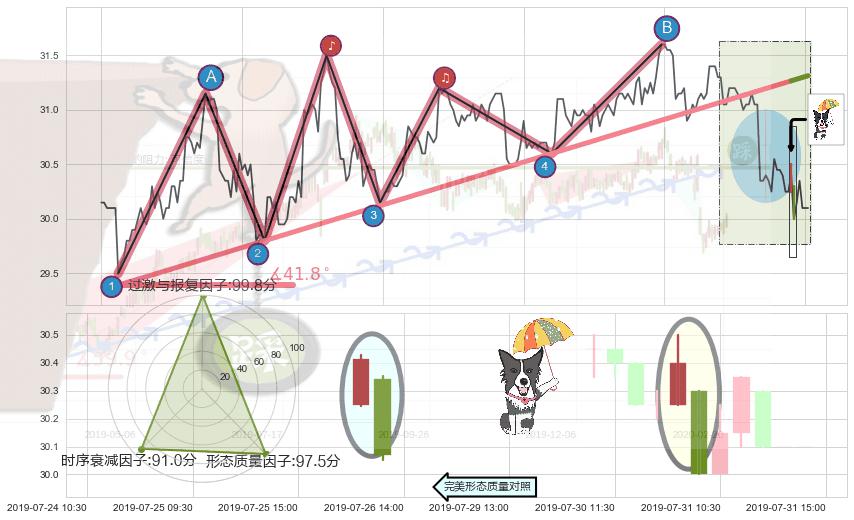➢ 2019-06-03 09:30-2019-07-30 15:00上升趋势存在反转[风险],其原上升趋势的支撑位(31.31)已破位[强阻力信号],原上升趋势角度: 41.8˚