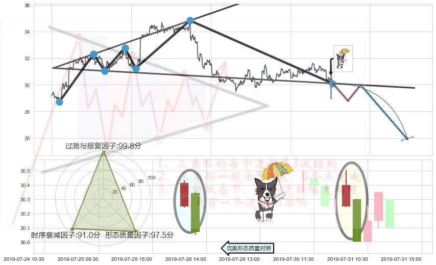 ➣ 2019-06-03 09:30-2019-07-30 15:00上升趋势存在反转[风险],其原上升趋势的支撑位(31.31)已破位[强阻力信号],原上升趋势角度: 41.8˚