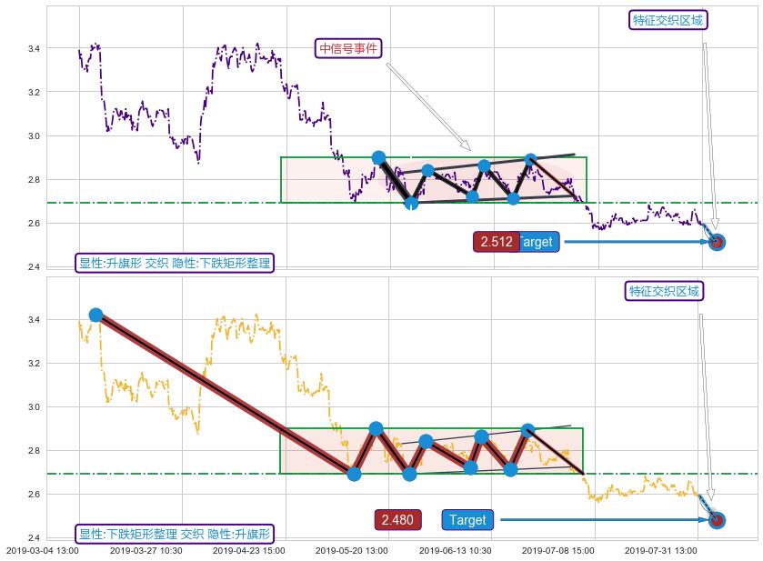 ➢ 下跌矩形整理:猜想预期下跌目标target即将达成,随后猜想强支撑来临,预期反弹上涨(均值回复)