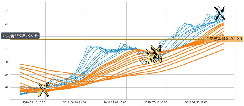 ➢ 21小时均线于(07-31 09:30: 33.76)形成【死叉】基于【死叉历史模型】预测死叉后最低波谷价格: 32.05, 死叉后最低价格33.55,尚未达到预测最低波谷价格, 预期继续下跌