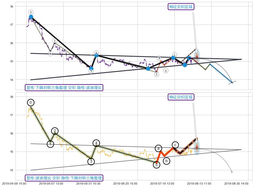 ➢ 下降对称三角整理与波浪理论信号事件周期长度级别相同,同周期信号事件