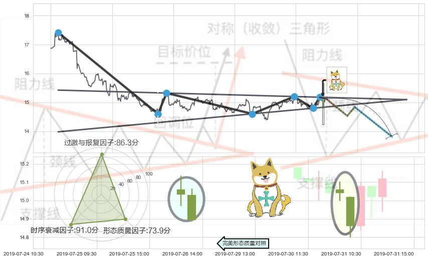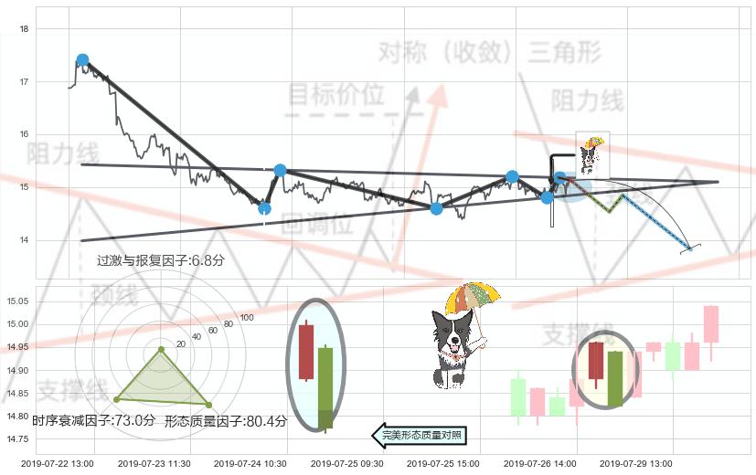 ➢ 下降【对称】三角形整理综合量化分数: 38.78 【强烈看空】