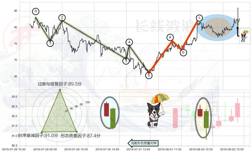 ➢ 🕰 价格走势在2019-08-01 10:30:00至2019-08-01 15:00:00期间形成上升三部曲(升势三鸦),残存影响值:6.71