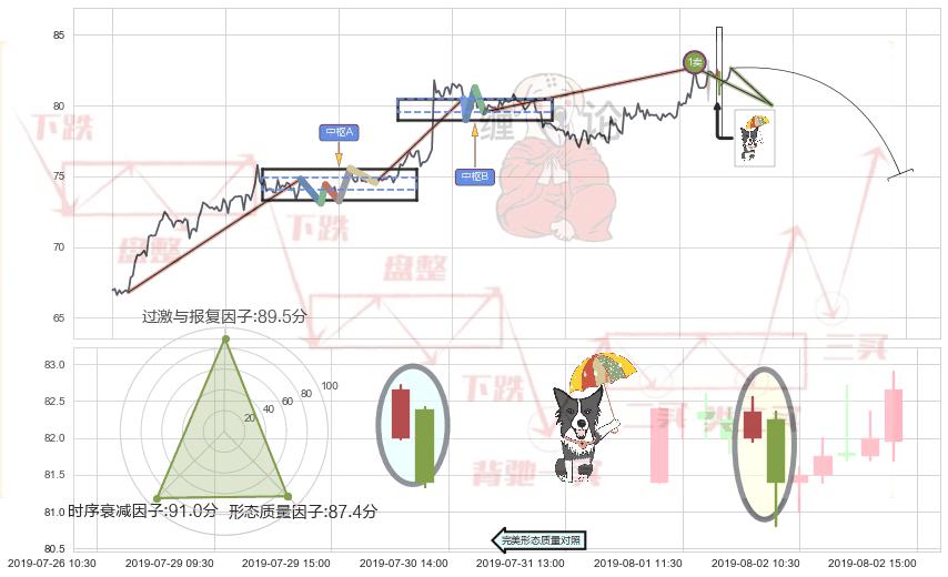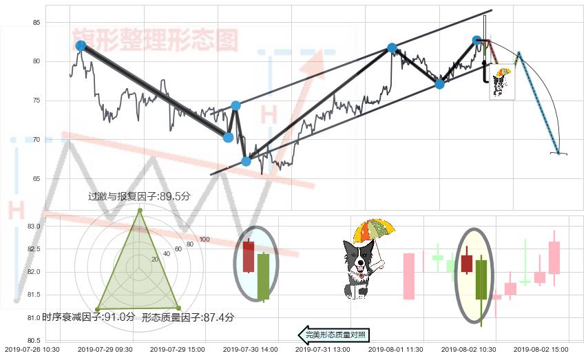 ➢ 🕰 价格走势在2019-08-01 15:00:00至2019-08-02 09:30:00期间形成倾盆大雨,残存影响值:-7.49