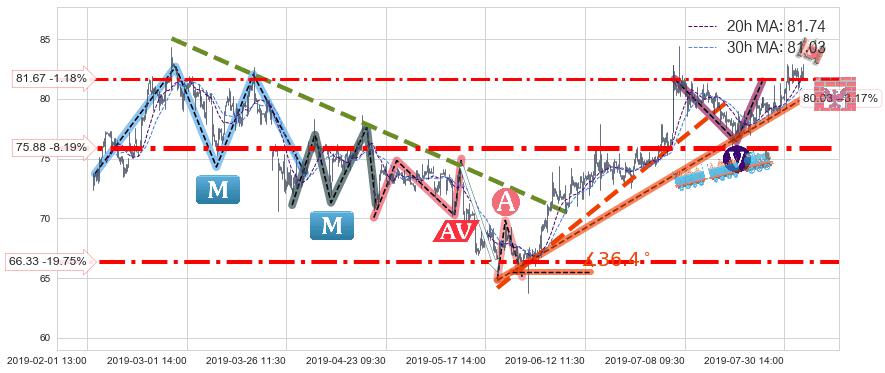 ♘ 支撑价格位81.67,可信任强度57.16%,距离最后交易2019-08-02 15:00形成的收盘价格82.65相差 -1.18%