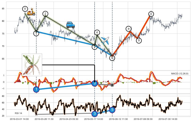 ➢ 波浪理论:猜想击穿突破c点后继续上涨 → 上涨 → 机会信号 → 小趋势跟踪