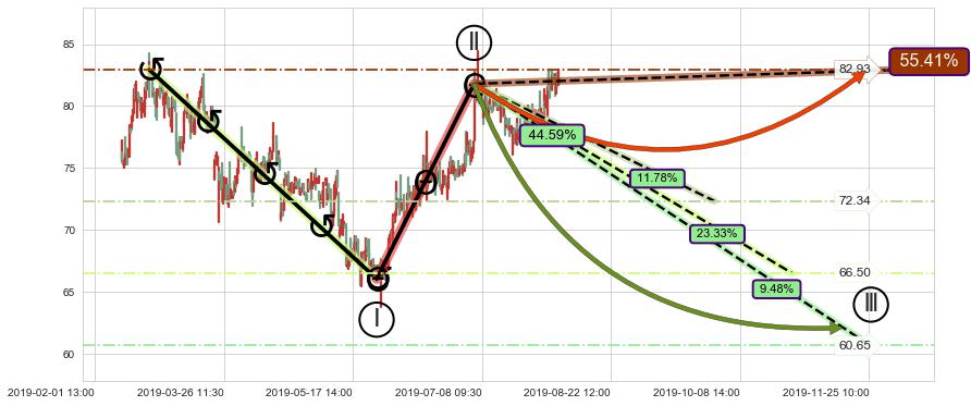 ➢ 循环浪继续向下【最高】位置(09-30:10, 72.34),匹配聚类样本比例26.42%, 可能性概率11.78%