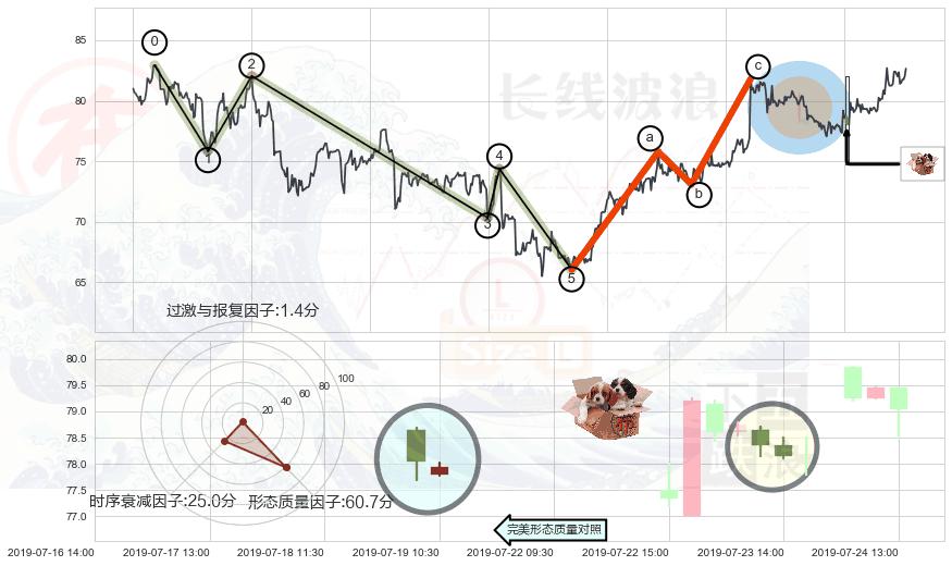 ➢ 🕰 价格走势在2019-07-23 13:00:00至2019-07-23 14:00:00期间形成底部尽头线(上山虎),残存影响值:1.72