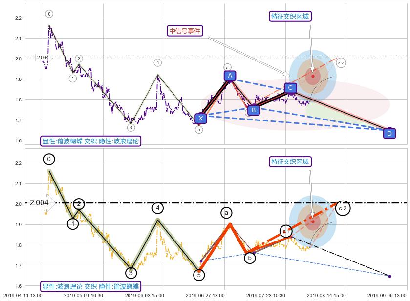 ➣ 未完成【蝴蝶】形态起点X: 06-19:09, 已到达C点: 07-24:14, 预测最终D点: 08-30:15, 共306交易小时