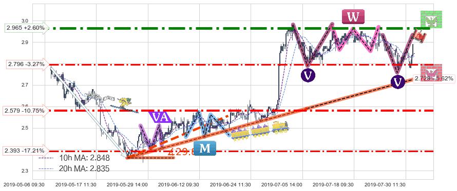♘ 阻力价格位2.965,可信任强度96.38%,距离最后交易2019-07-31 15:00形成的收盘价格2.890相差 +2.60%