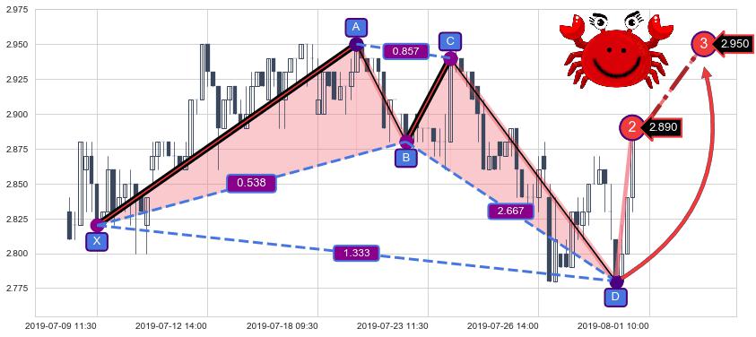 ➣ 已完成【螃蟹】形态起点X: 07-09:11, 终点D: 07-31:09, 共95交易小时