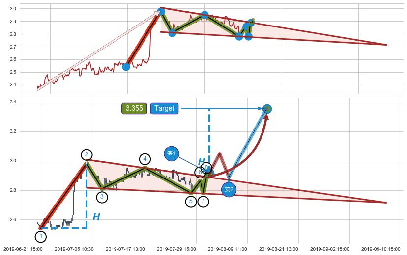 ➣ 【仅预测突破】最后价格:2.890与预测突破价格:2.915→【空间临近】后续最小【整理】第一目标价格→(08-14:12: 3.355 )