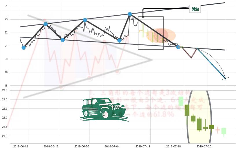 ➣ 扩散三角反转:猜想临近关键支撑位突破点 → 临近拐点下跌 → 风险信号 → 大趋势均值回复