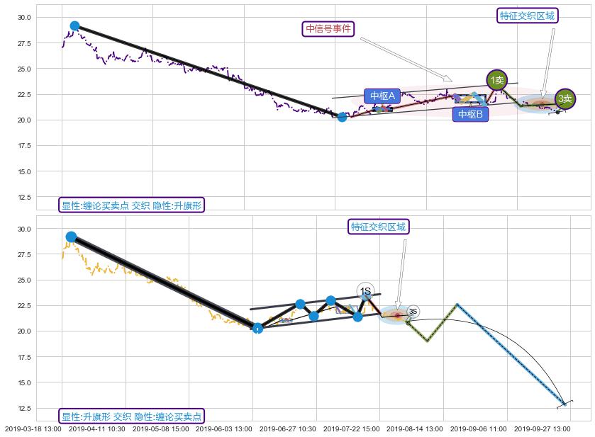 ➣ 缠论买卖点:上升缠:临近3卖-猜想击穿破位3卖后延续下跌趋势(大周期趋势均值回复后小周期持续趋势跟踪)