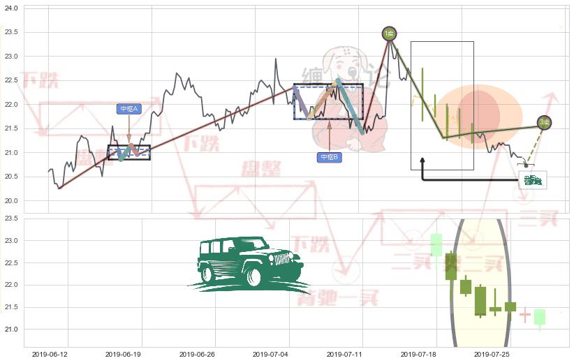 从2019-07-15 09:30至2019-07-31 15:00,共包含78个小时,阶段股价下跌-2.03%,阶段股价变动位移路程比: 1 : 21