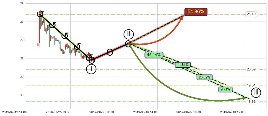 ➣ 预测:2019-08-05 12:00,【试探阻力】稳定目前下跌趋势的前提下,预测价格:20.34