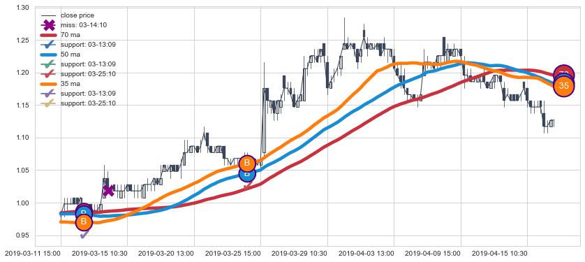 ➢ 最优均线组合共正确确认支撑阻力信号6处,正确确认率 50.00%
