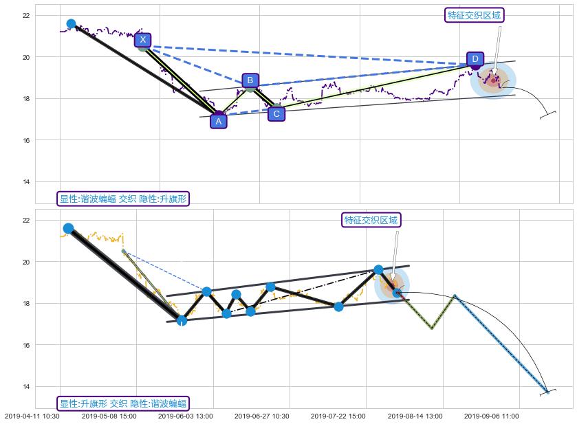 ➢ 谐波蝙蝠与升旗形信号事件周期长度级别相同,同周期信号事件