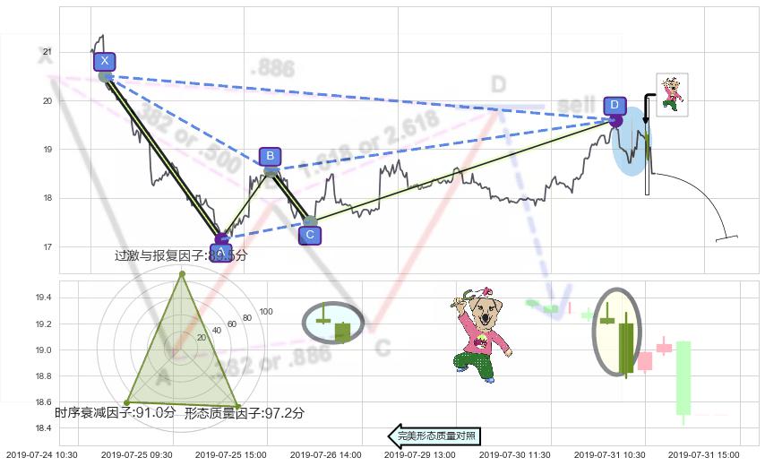 ➢ 🕰 价格走势在2019-07-25 09:30:00至2019-07-25 10:30:00期间形成顶部尽头线(下山虎),残存影响值:-2.89