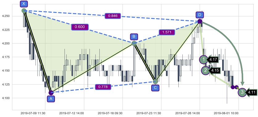➣ 谐波伽利:d下跌即将临近第❸目标:猜想支撑拉升 → 上涨 →【拐点】机会信号 → 大趋势均值回复