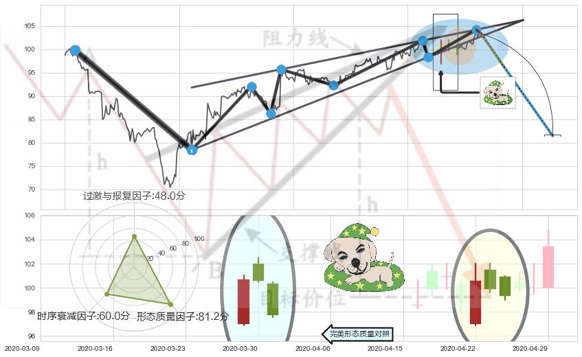 ➣ 【仅预测突破】最后价格:103.40与预测突破价格:102.71→【空间临近】后续最小【整理】第一目标价格→(05-14:11: 81.41 )