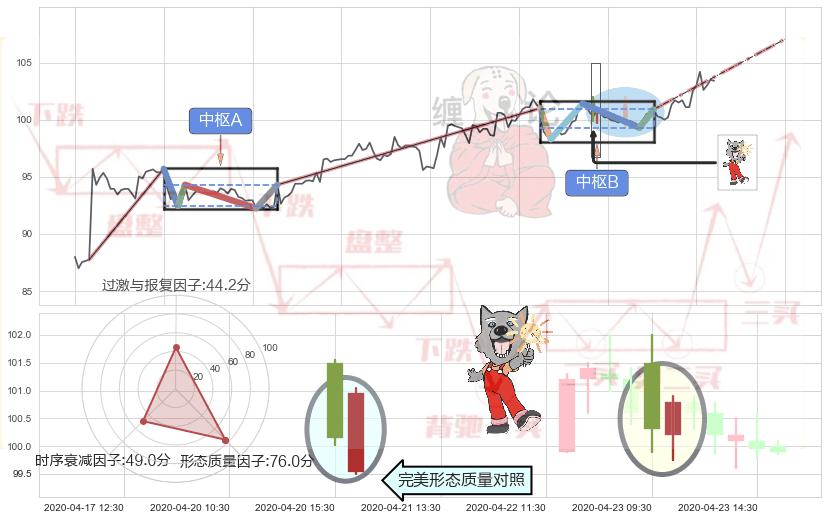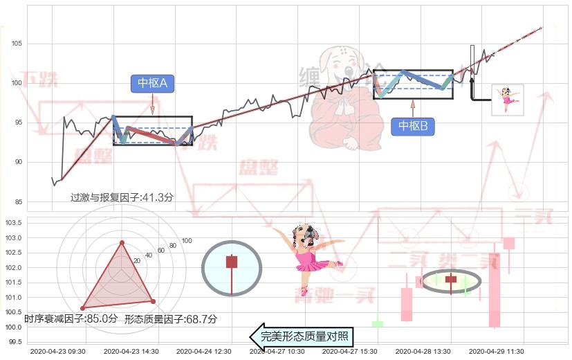 ➢ 🕰 价格走势在2020-04-23 09:30:00至2020-04-23 10:30:00期间形成曙光初现形态,残存影响值:5.01