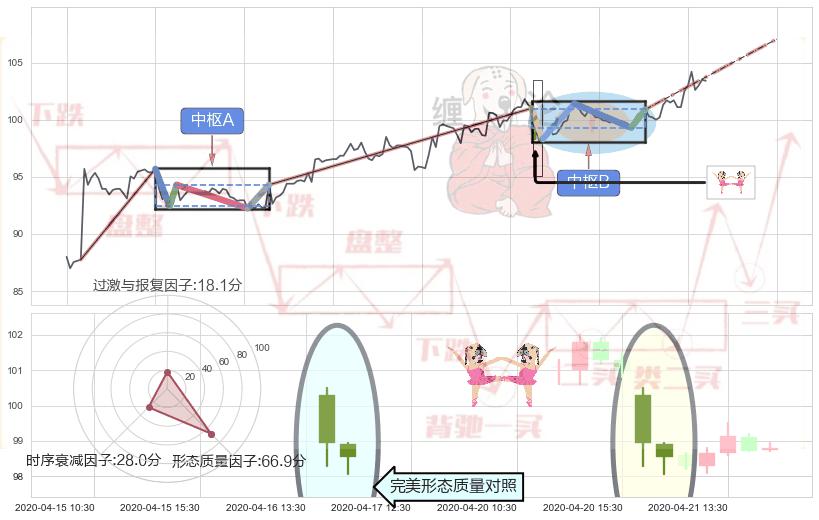 ➢ 【中枢B】:04-20:15-04-27:12,中枢由5笔构成,共33交易小时, ZG=100.90, ZD=99.30