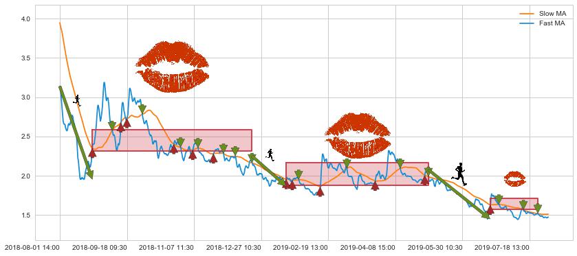 06-20 09:30至07-24 14:00 慢线与快线多次接触,存在上下穿越,有缠绕
