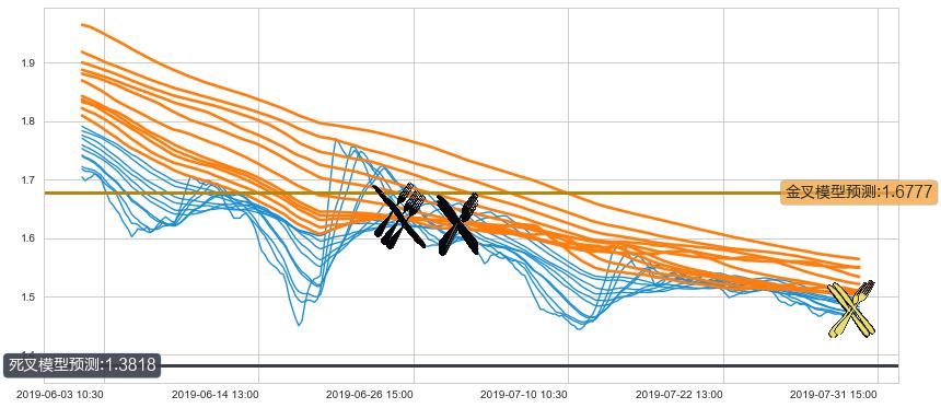 ➢ 95小时均线于(07-02 10:30: 1.6285)形成【死叉】基于【死叉历史模型】预测死叉后最低波谷价格: 1.3174, 死叉后最低价格1.4400,尚未达到预测最低波谷价格, 预期继续下跌