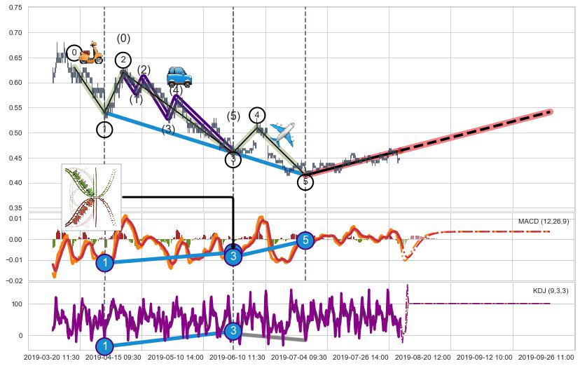 ➣ 【KDJ】缠论走势出现【常规背离 & 反转信号】背离程度99.00%,背离夹角角度89.3˚,背离程度较大