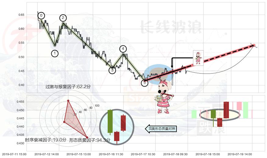 ➢ 🕰 价格走势在2019-07-18 14:00:00至2019-07-19 09:30:00期间形成早晨之星(黎明之星),残存影响值:3.51