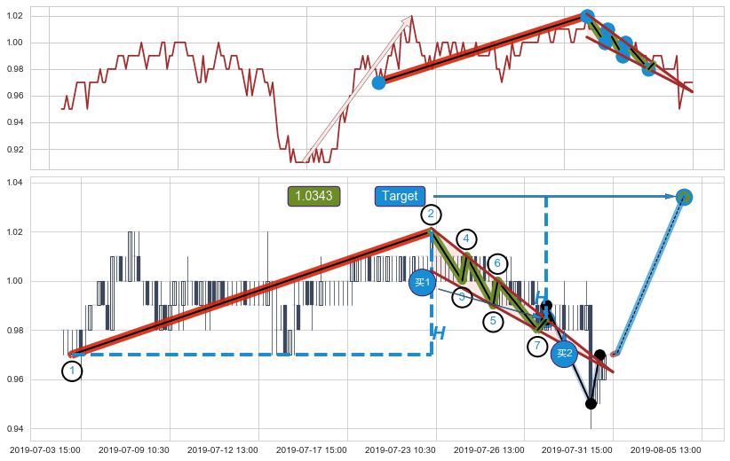 ➢ 最小中继整理涨幅→𝐇: 0.0500000 (𝐇楔型旗杆的长度:楔型起点→顶点)