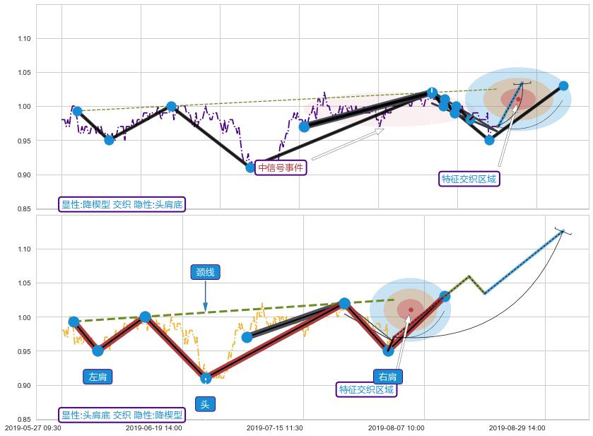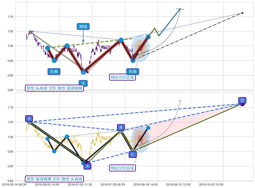 ➢ 头肩底与谐波蝴蝶信号事件周期长度级别相同,同周期信号事件