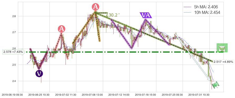 ♘ 阻力价格位2.578,可信任强度70.05%,距离最后交易2019-07-31 15:00形成的收盘价格2.400相差 +7.43%