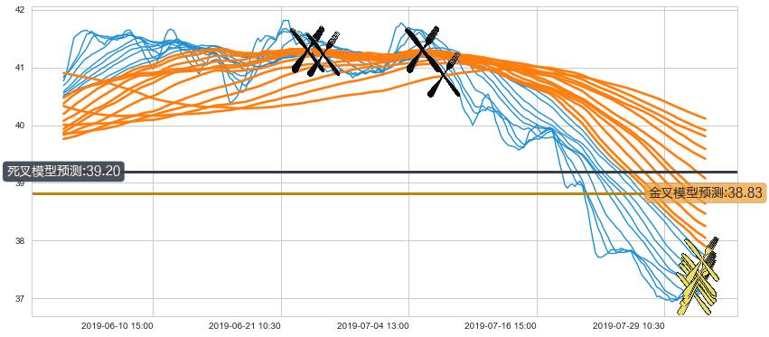 ➢ 60小时均线于(07-05 11:30: 41.28)形成【死叉】基于【死叉历史模型】预测死叉后最低波谷价格: 39.18, 死叉后最低价格36.90,已经下跌超出预测最低波谷价格, 预期反弹