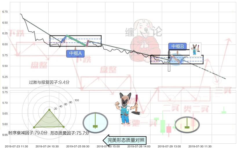 ➣ 【中枢B】:07-29:15-07-31:10,中枢由4笔构成,共9交易小时, ZG=5.65, ZD=5.63