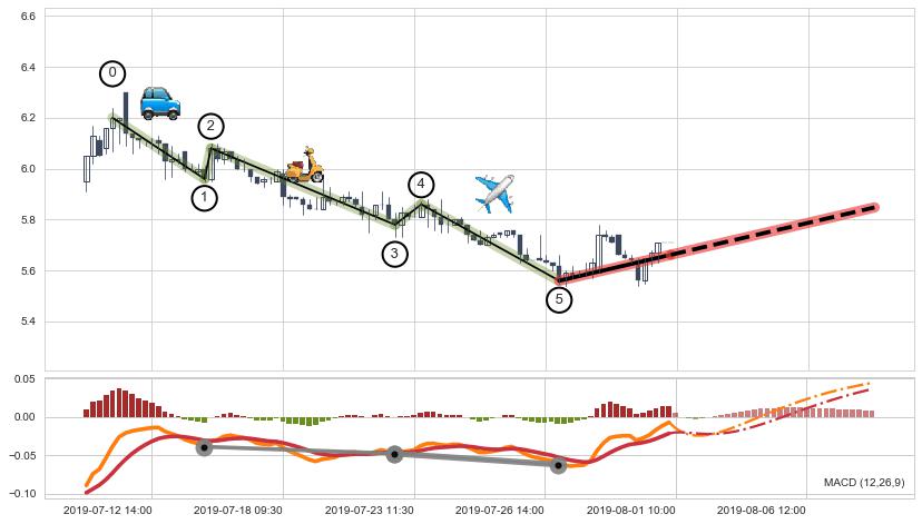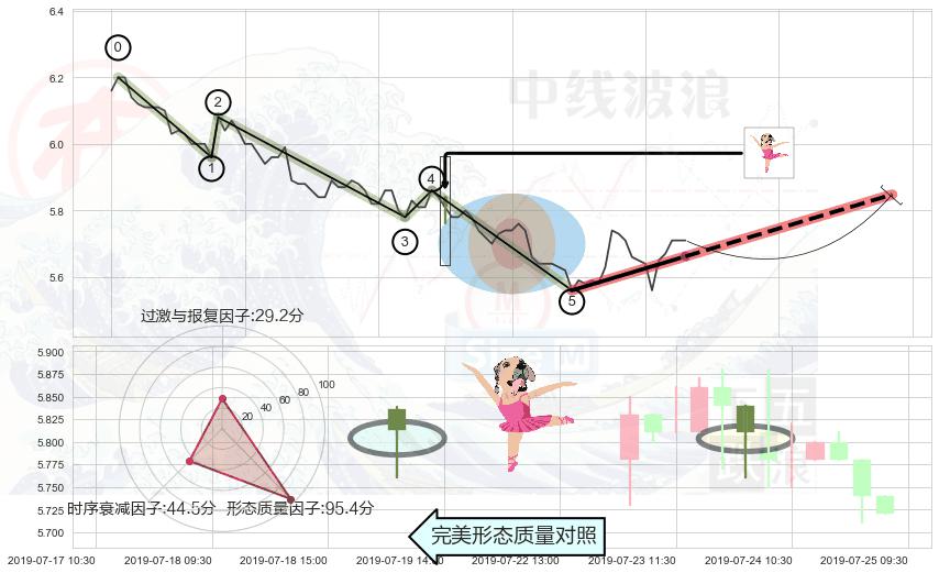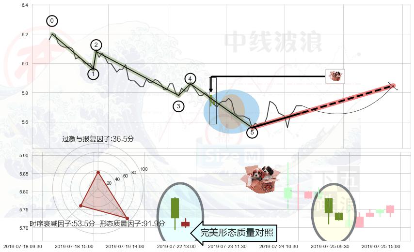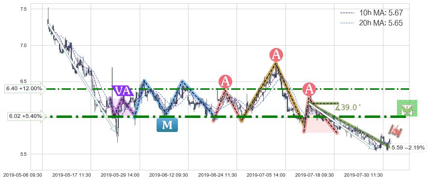 ➢ 2019-07-11 14:00-2019-07-31 14:00下跌趋势存在反转上涨[机会],其原下跌趋势的阻力位(5.59)已被突破[强支撑信号],原下跌趋势角度: 39.0˚