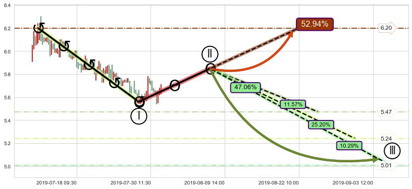 ➣ 循环浪继续向下【平均值】位置(08-30:12, 5.24),匹配聚类样本比例53.54%, 可能性概率25.20%