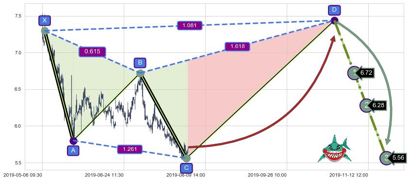 ➣ 谐波鲨鱼:猜想c点下沉击穿越过b点后报复性拉升上涨(均值回复)