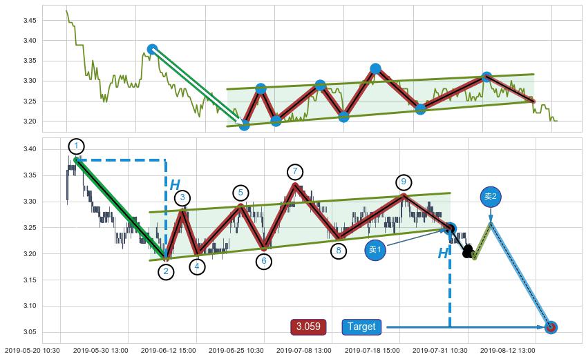 ➣ 最小中继整理跌幅→𝐇: 0.189000 (𝐇旗杆的长度:旗杆起点→顶点)