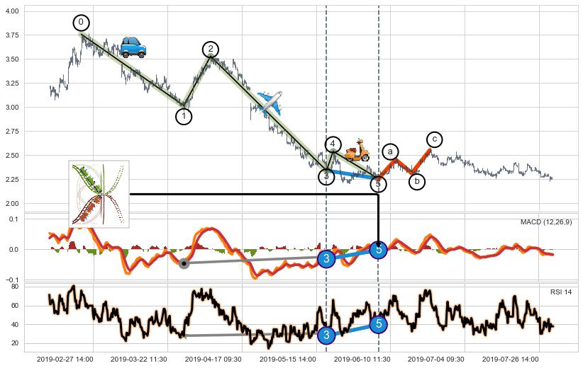 ➢ 第三,五驱动浪端点:【RSI】走势出现【常规背离 & 反转信号】背离程度65.69%,背离夹角角度78.8˚,背离程度较大