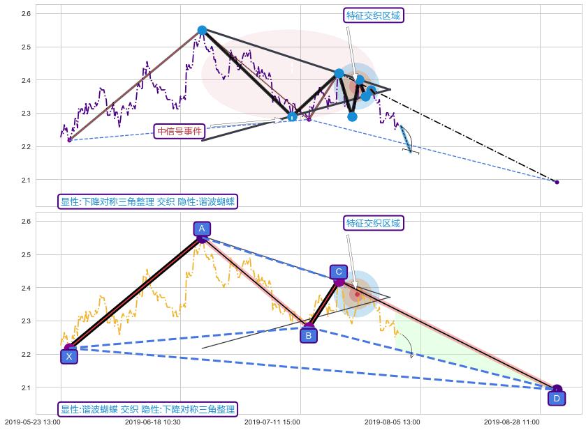 ➢ 下降对称三角整理属【中级别信号事件】谐波蝴蝶属【长级别信号事件】中长周期组合信号事件,中长事件长度比52.16%