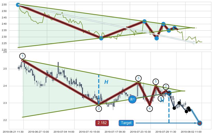 ➣ 最小中继整理跌幅→𝐇: 0.200000 (𝐇旗杆的长度:旗杆起点→顶点)