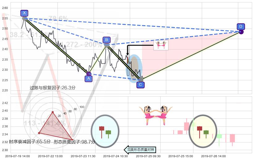 ➢ 🕰 价格走势在2019-07-26 09:30:00至2019-07-26 10:30:00期间形成双针探底,残存影响值:4.67