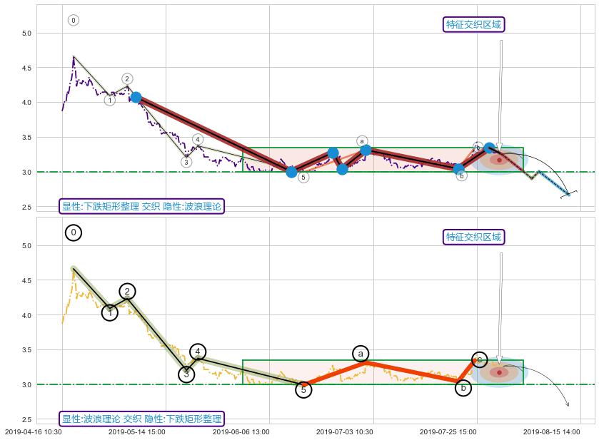 ➢ 下跌矩形整理与波浪理论信号事件周期长度级别相同,同周期信号事件
