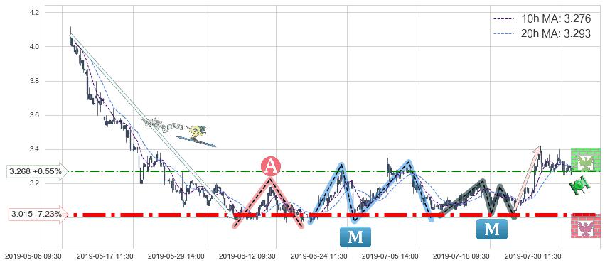 ♘ 阻力价格位3.268,可信任强度51.31%,距离最后交易2019-07-31 15:00形成的收盘价格3.250相差 +0.55%