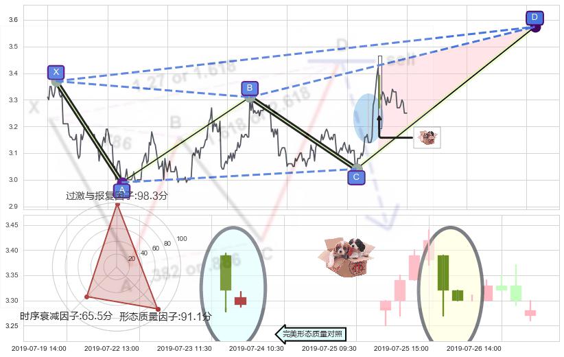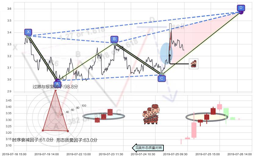 ➢ 🕰 价格走势在2019-07-26 09:30:00至2019-07-26 10:30:00期间形成底部尽头线(上山虎),残存影响值:7.11