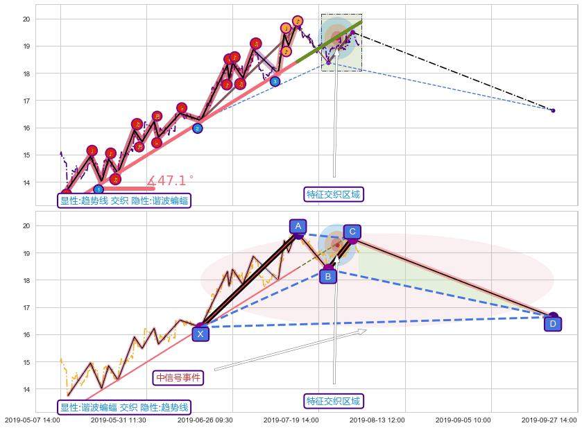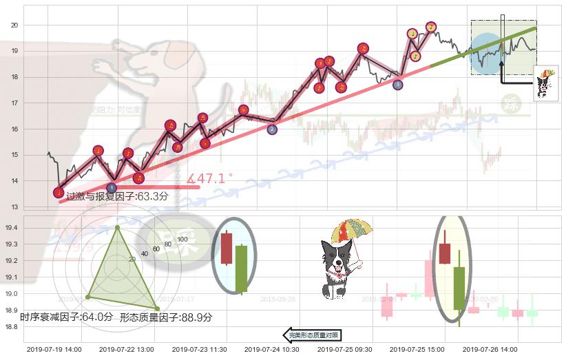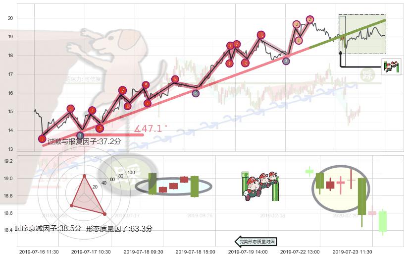 ➢ 2019-05-09 10:30-2019-07-15 13:00上升趋势存在反转[风险],其原上升趋势的支撑位(19.87)已破位[强阻力信号],原上升趋势角度: 47.1˚