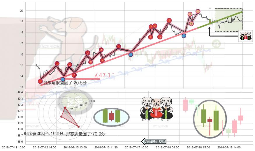 ➣ 2019-05-09 10:30-2019-07-15 13:00上升趋势存在反转[风险],其原上升趋势的支撑位(19.87)已破位[强阻力信号],原上升趋势角度: 47.1˚