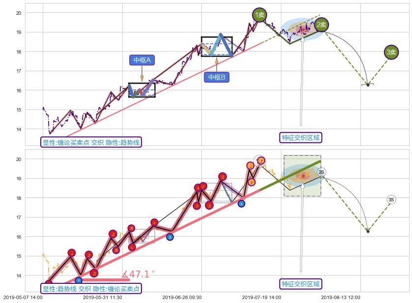 从2019-05-09 10:30至2019-07-15 13:00,共包含267个小时,阶段股价上涨37.23%,阶段股价变动位移路程比: 1 : 4,上涨趋势角度: 47.1